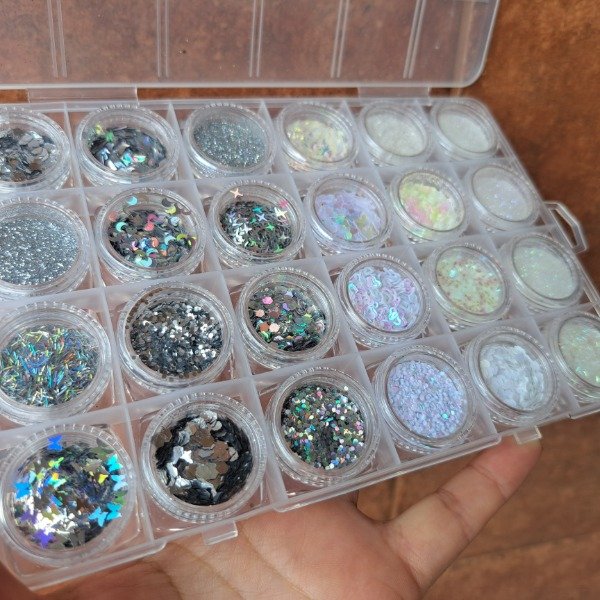 Set glitter plata blanco